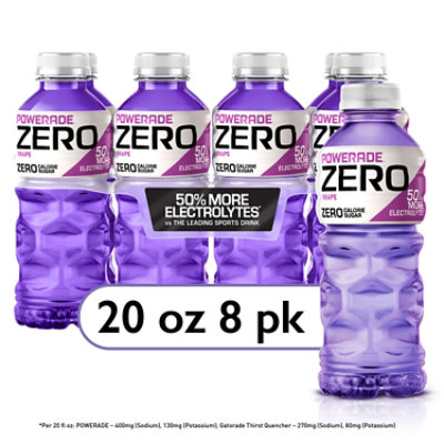 Powerade Ingredients | All You Need To Know - Sports Drinks USA Ingredients of Powerade Zero: Water (less than 1% of citric acid) Electrolytes (Magnesium Chloride, Calcium Chloride, Mono Potassium Phosphate) Sucralose Acesulfame K Vitamin B3y, B6 B12 Ascorbic acid Calcium Disodium EDTA All of these ingredients are Sugar-free, and to balance taste artificial sweeteners like Sucralose and Acesulfame K are added. Powerade Zero Sugar Grape Electrolyte Enhanced Sports Drinks POWERADE ZERO™ is a Zero Calorie Sports Drink formulated with Vitamins B3, B6, B12 and the ION4® Advanced Electrolyte System that helps replenish four electrolytes lost in sweat. ... Disclaimer Actual product packaging and materials may contain additional and/or different ingredient, nutritional, or proper usage information than the ...