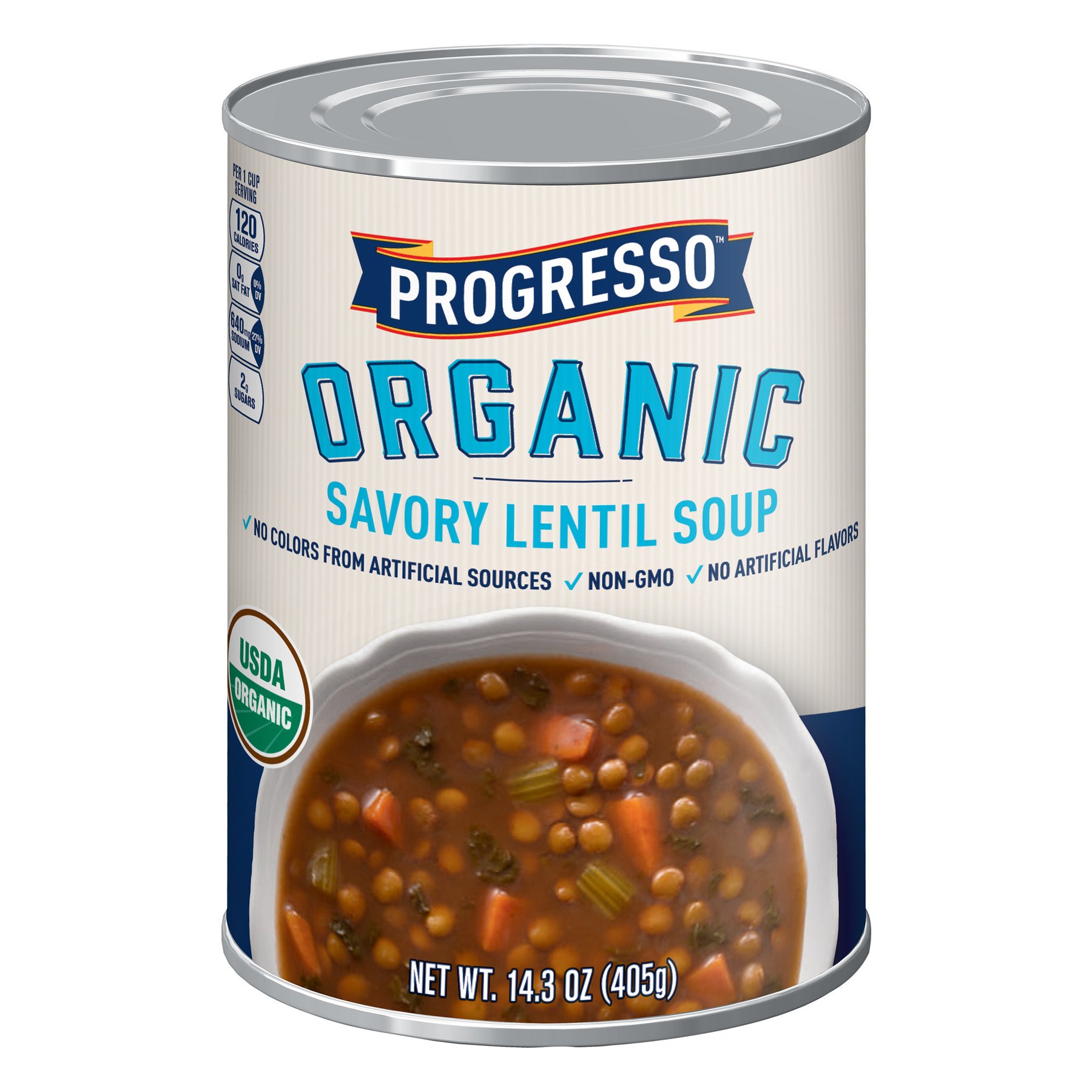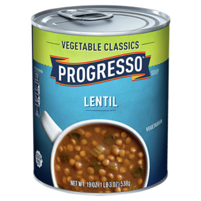 Progresso™ Vegetable Classics Gluten Free Lentil Canned Soup VEGETABLE CLASSICS: Progresso Lentil Soup is vegetarian. DELICIOUS FOOD: Made with one-half cup vegetables per serving. QUALITY INGREDIENTS: Contains no artificial flavors or colors from artificial sources. QUICK-AND-EASY: Ready to serve in under five minutes; about two servings per container. PER SERVING: Good source of fiber and 140 calories. Save on Progresso Vegetable Classics Lentil with Roasted ... Progresso Vegetable Classics Lentil with Roasted Vegetables Soup ; Serving Size: 1.0 can ; Calories: 110 ; Total Fat: 0g 0 ; Saturated Fat: 0g 0 ; Trans Fat: 0g. Progresso Vegetable Classics Soup Lentil - 19 Oz - Albertsons Shop Progresso Vegetable Classics Soup Lentil - 19 Oz from Albertsons. Browse our wide selection of Canned Soups for Delivery or Drive Up & Go to pick up at the store! ... Soup, Lentil Per 1 Cup Serving: 160 calories; 0.5 g sat fat (3% DV); 810 mg sodium (34% DV); 2 g sugars. No colors from artificial sources. No artificial flavors. Vegetarian ...