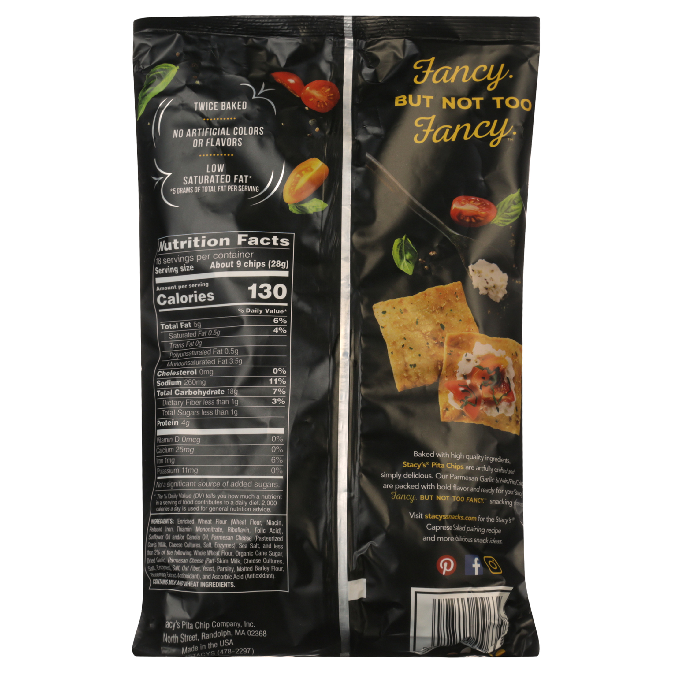 Stacy's ® Parmesan Garlic & Herb Pita Chips - Stacy's Snacks Stacy's ® Parmesan Garlic & Herb Pita Chips Real Parmesan cheese, garlic and parsley are twice-baked right on to our signature pita bread for a flavorful bite. Nutrition Ingredients Buy Now Please note that some products may not be available in your area. Please check with your local grocer regarding availability.