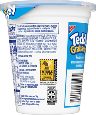 Nabisco Teddy Grahams Crackers Honey 1x10 Oz Nutrition Facts Nabisco Teddy Grahams Crackers Honey 1x10 Oz Ingredients. Nabisco Teddy Grahams Crackers Honey 1x10 Oz contains the following ingredients: Ingredients: graham flour (whole grain wheat flour), enriched unbleached flour (wheat flour, niacin, reduced iron, thiamine mononitrate {vitamin b1}, riboflavin {vitamin b2}, folic acid), sugar, canola oil, dextrose, honey, calcium carbonate (source of ...