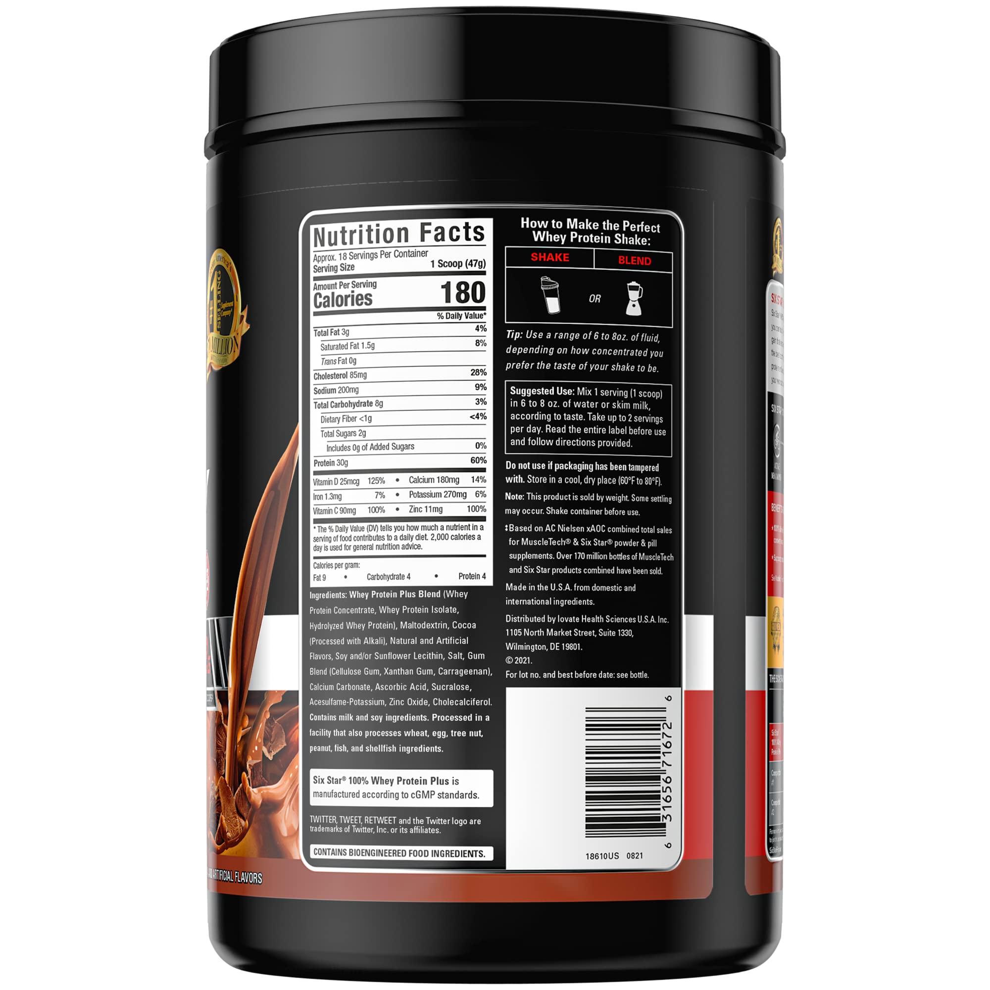 Six Star 100% Whey Protein Plus, 32g Ultra-Pure Whey Protein Powder ... Whey Protein, Assembled Product Weight, 2.35 lb, Food Form, Powders, Manufacturer, Iovate Health Sciences Inc. Flavor, Chocolate, Size, 2.0 lbs, Manufacturer Part Number, MSC70186, Model, MSC70186, Brand, Six Star Pro Nutrition, Features, 2 lbs (907 g) Assembled Product Dimensions (L x W x H) 5.52 x 5.52 x 8.50 Inches, Indications, Health Concern,