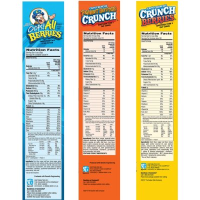 Cap'n Crunch Crunch Berries Cereal - H-E-B Shop Cap'n Crunch Crunch Berries Cereal - compare prices, see product info & reviews, add to shopping list, or find in store. ... Nutrition Facts. Crunch ... Nutrition information for Cap'n Crunch Cap'n Crunch. Nutrition Facts. Serving Size 1 cup. Amount per serving. Calories, 144, Calories from Fat, 19. % Daily Value. Total Fat, 2.10 g, 3%. Calories in Captain Crunch - Nutritionix Captain Crunch. Nutrition Facts. Captain Crunch. Serving Size: cup (36g grams). Amount Per Serving. Calories 143. Calories from Fat 17. % Daily Value*.