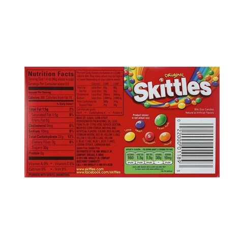 38 skittle nutrition label
