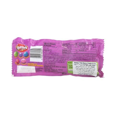 SKITTLES Original Fruity Candy Single Pack, 2.17 oz 2.17 oz Every pack of SKITTLES Original Fruity Candy gives you the chance to Taste the Rainbow, with a variety of fruit flavors almost too good to be true. Flavors include strawberry, green apple, grape, lemon and orange. Where To Buy Nutrition Serving Size 1 package (61.5g) Servings Per Container 1 Amount per serving % Daily value Calories 250
