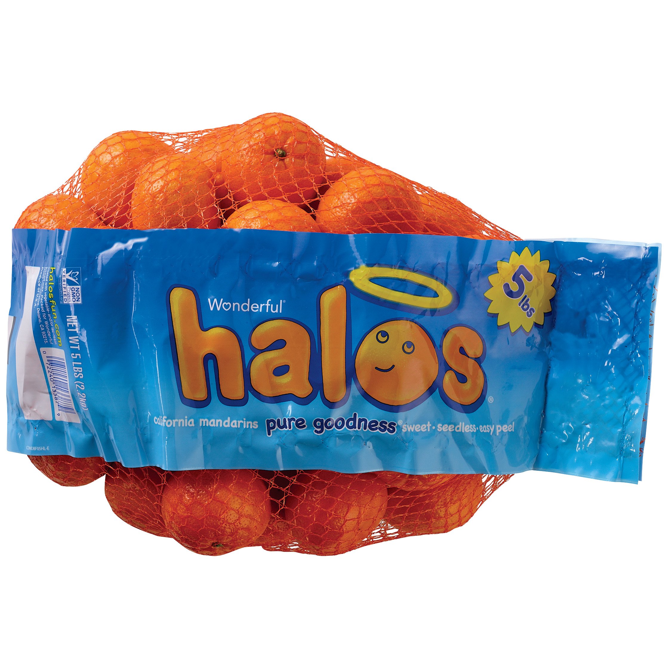 Calories in Wonderful Halos Mandarin Oranges and Nutrition Facts Calories 37 Fat 0.2g Carbs 9.3g Protein 0.6g There are 37 calories in 1 orange of Wonderful Halos Mandarin Oranges. Calorie breakdown: 4% fat, 90% carbs, 6% protein. More Products from Wonderful: Sea Salt & Vinegar Pistachios Chili Roasted Pistachios (Bag) Pistachios BBQ Honey Roasted Pistachios (Bag) Honey Roasted Pistachios
